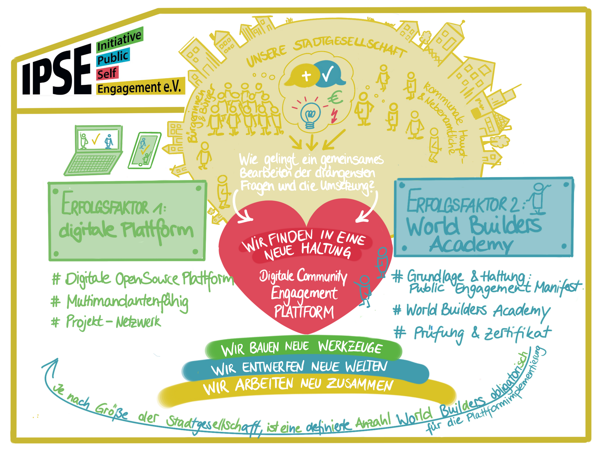ipse e.V. setzt sich für ein gesellschaftliches Klima der offenen Beteiligungskultur in Städten und Gemeinden ein. Menschen erleben transparente Prozesse und erfahren soziale Selbstwirksamkeit.
